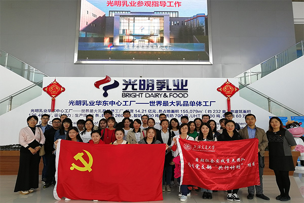 为进一步增进学生党员对企业的了解,在座谈会之后,党员们前往光明乳业华东中心工厂,在光明乳业朱培老师带领下参观学习世界上最大乳品单体工厂的生产车间。学生党员们参观了酸奶、鲜奶等加工过程,对乳制品生产和加工流程有了更深入的了解。