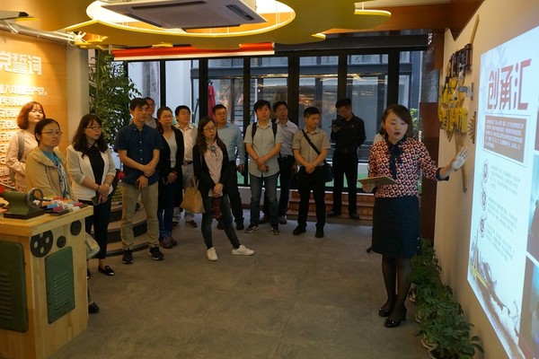 5月25日上午,det365登录网站主页党委书记仰颐、副书记郑敏和李文纯带领新一届教工党支部委员、学生党总支委员培训班学员一行二十余人走进上海杨浦区大桥街道的长阳创谷党建服务站开展实践教育学习。长阳创谷经历了从百年纺纱机械厂到全国“双创周”主会场的历史蜕变和华丽转身,是杨浦百年工业的历史缩影。这里集聚的主要是企业员工、青年白领和创客们,在这种相对松散的组织形式下,街道党委面对他们如何开展好党建工作?带着这个问题,学员们通过实地参观学习、工作人员介绍交流,与大家共同上了一堂生动的实践教育课。