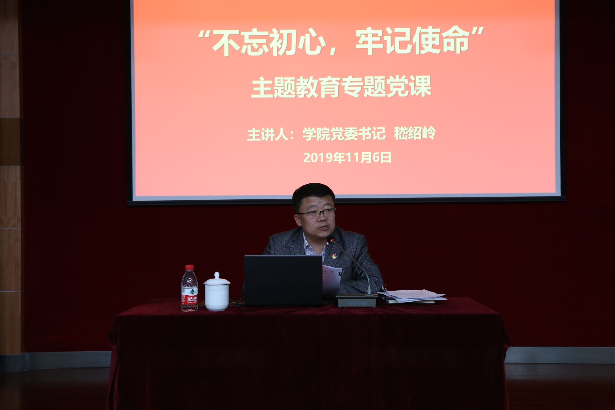 根据校党委“不忘初心、牢记使命”主题教育工作部署,det365登录网站主页党员领导班子成员陆续在对应的党支部、党员中讲专题党课。11月6日,学院党委书记嵇绍岭以《从教学到治学,大学教师职责发挥的实践路径》为主题,为学院全体教职工党员上党课。学校第三巡回指导组副组长陈露君、联络员陈思参会指导。党课由学院党委副书记李文纯主持。