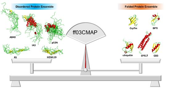 近日,det365登录网站主页陈海峰教授课题组在J. Chem. Theory Comput. 期刊在线发表题为“Well-balanced Force Field ff03CMAP for Folded and Disordered Proteins”的研究成果,提供了一种新的高效而平衡的、能够同时模拟结构蛋白和天然无规蛋白的分子力场。硕士生张阳鹏为第一作者,陈海峰教授为通讯作者。