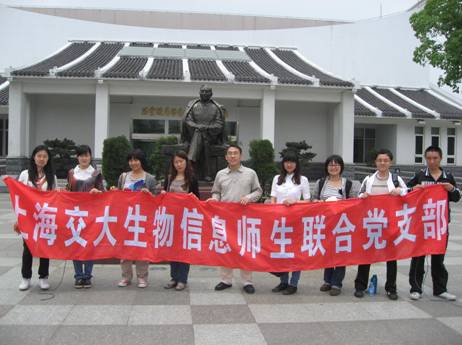 2012年4月18日,生物信息师生联合党支部的师生们来到了中共一大会址。从中国共产党成立的背景开始参观,到一大召开的历史场景,最后参观了周总理图片展。通过本次参观,支部成员加深了对党史的了解和认识,深刻体会到中国共产党能够从弱小走向强大是历史的必然和人民的选择,进一步增强了共产主义理想和爱国主义信念。参观结束之后,师生党员对如何在学习、科研和日常生活中发挥共产党员的先锋模范作用进行了热烈的讨论。