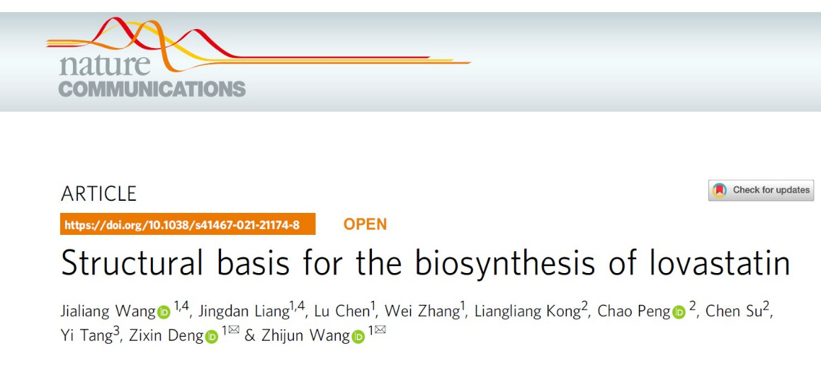近日,det365登录网站主页、微生物代谢国家重点实验室邓子新团队于《自然通讯》(Nature Communications)杂志上发表题为 “洛伐他汀生物合成的结构基础”(Structural basis for the biosynthesis of lovastatin)的研究论文。该工作通过结构生物学与生物化学相结合的手段,解析了洛伐他汀合成机器的三维结构,深入推动次生代谢巨型合酶的结构研究,为衍生新型他汀类药物提供蛋白结构基础。