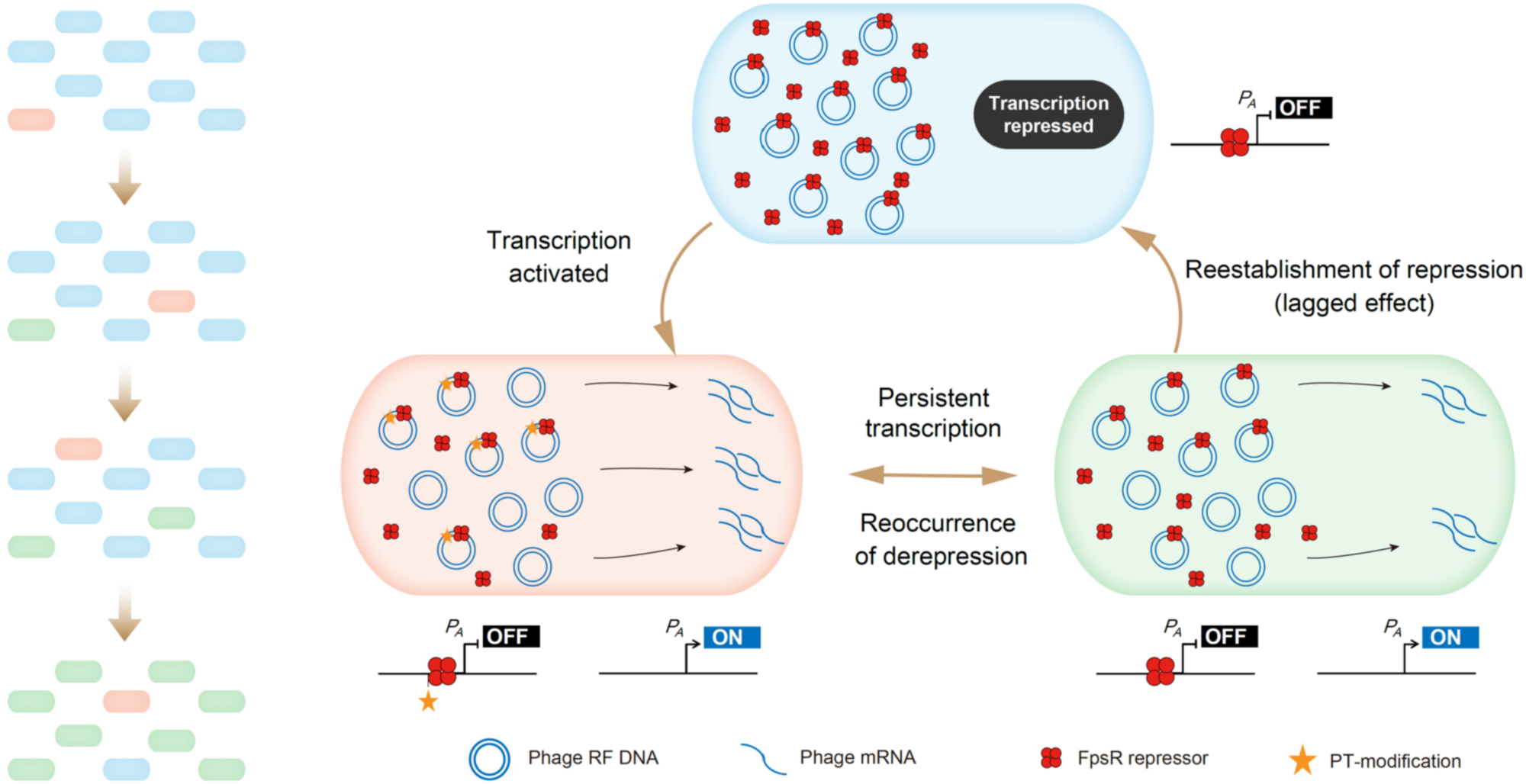 由dnd基因簇介导的DNA磷硫酰化(PT)修饰是首例报道的发生在DNA骨架上的修饰。dnd基因簇编码的多个蛋白协同作用,构成了微生物基因组中具有多种功能的表观遗传系统,它赋予了微生物包括抗氧化、限制修饰和抗病毒侵染等在内的多种能力。有趣的是,相比其他修饰系统(如甲基化修饰),尽管dnd系统会给微生物带来多种生存优势,但它们却零散地分布在众多的原核生物中。为了解答这一生态悖论,研究团队首先提出了科学假设:在通过水平基因转移进行传播的过程中,dnd系统带来的PT修饰可能影响了受体微生物的基因表达,特别是激活了在微生物基因组中广泛分布的原噬菌体,从而导致受体微生物的生存劣势,因此显著限制了dnd系统的扩散与分布。为验证这一假设,我们系统地分析了细菌基因组中dnd基因及基因簇与原噬菌体分布之间的关系,结果显示两者呈现显著的负相关。进一步地,以海洋丝状噬菌体SW1及其宿主菌Shewanella piezotolerans WP3作为模式系统的深入分析表明:PT修饰显著影响了噬菌体调控蛋白FpsR的丰度及其与操纵子的结合亲和力,从而解除了SW1原噬菌体的转录抑制。此外,在多个细菌(包括E. coli, S. oneidensis MR-1, S. putrefaciens W3-18-1)中的接合转移和转化实验结果,同样证实了dnd基因簇的水平基因转移受到原噬菌体的限制。综合竞争性实验、转录组和修饰组分析显示,除原噬菌体基因之外,PT修饰还会影响海洋细菌 S. piezotolerans WP3中多种代谢和抗逆相关基因的转录,从而导致其竞争适应性的显著降低。