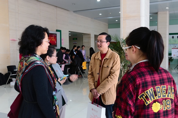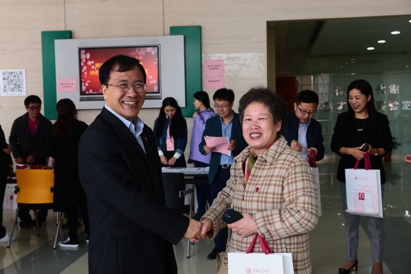 学院老师、机关科室工作人员、原班主任教师、退休教师以及校友陆续来到学院大厅,师生相见,共叙往日情谊。