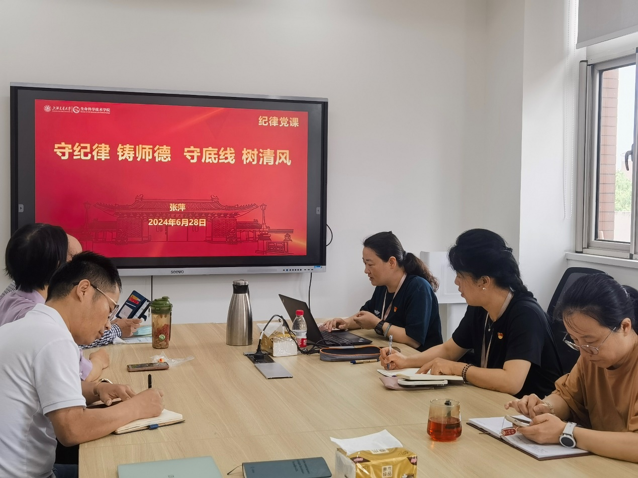 2024年6月28日,det365登录网站主页实验教学中心-仪器平台支部在叶杰全300会议室开展党纪及师德师风学习教育。支部全体党员参加学习,会议由党支部书记张萍主持。