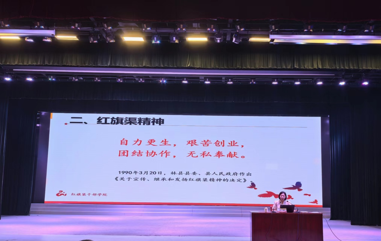 下午,红旗渠干部学院培训部副主任冯琳围绕《红旗渠精神及其当代启示》作专题讲座,她通过详实的史料、朴实的语言从红旗渠、红旗渠精神以及当代启示三个方面展开讲解,希望学员能够在红旗渠精神的引领下,将震撼转化为振奋、将激动转化为行动,做到学思用贯通、知信行统一,为实现第二个百年目标,做出我们这一代人的贡献。晚上,学员们观看话剧《红旗渠》,三个篇章、十个故事用生动感人的人物群像、生活细节,描绘出一幅林县人民在党的领导下,“重新安排林县河山”的艺术画卷,让大家在形象的情景教学中更加深刻地领悟红旗渠精神。
