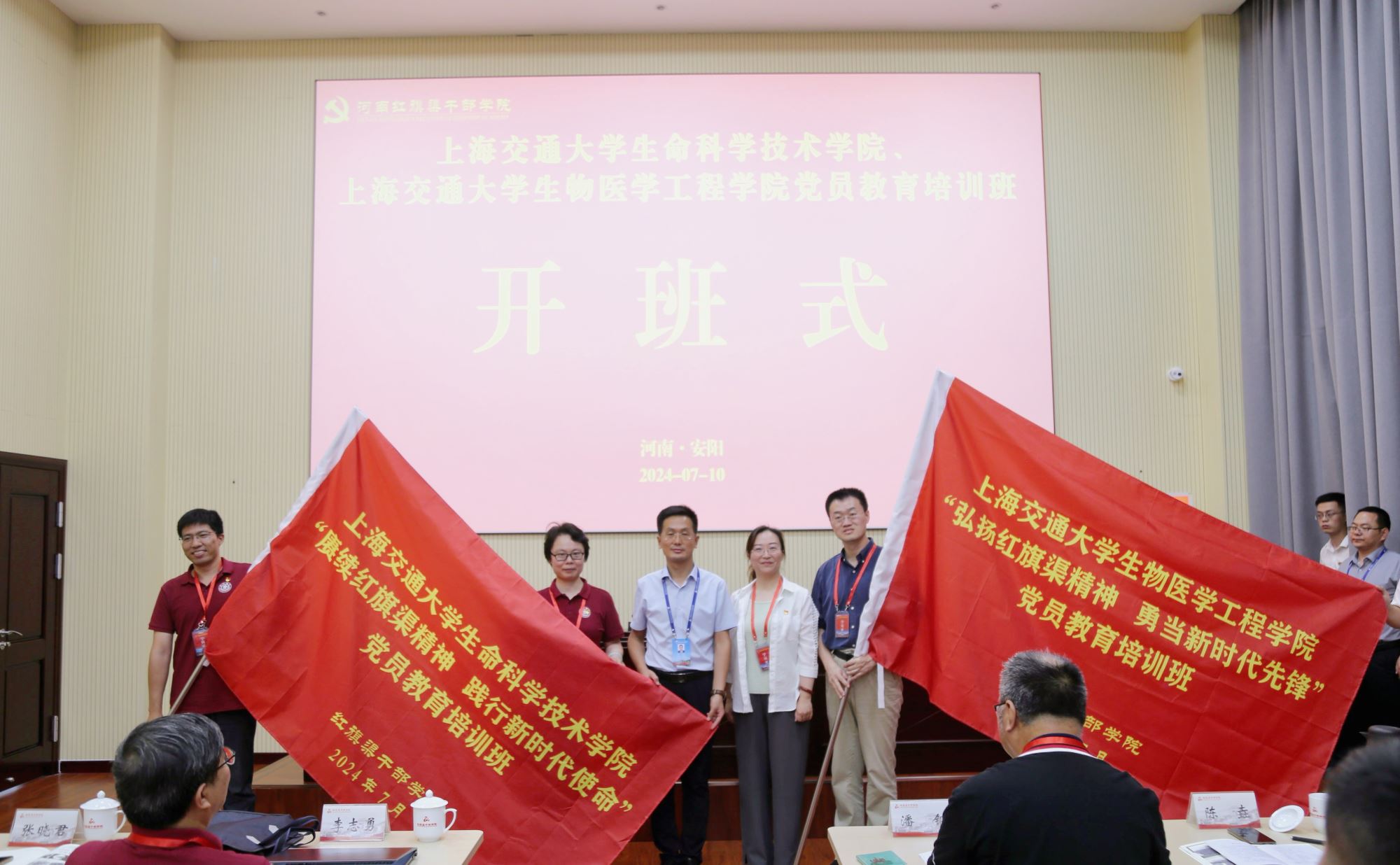 7月10日下午,det365登录网站主页和生物医学工程学院在红旗渠干部学院共同举行开班仪式。河南红旗渠干部学院党委委员、副院长刘树伟同志,生物医学工程学院党委副书记周申申,det365登录网站主页党委副书记王鑫、党委委员李志勇、张晓君、白林泉等出席仪式。刘树伟对两个学院的到来表示热烈欢迎,他介绍了安阳市、林州市及红旗渠干部学院基本情况、红旗渠精神的丰富内涵等;周申申进行开班动员讲话,红旗渠精神是中国共产党人精神谱系的重要组成部分,希望大家在持续推动学院高质量发展的进程中通过本次学习汲取团结协作、凝聚力量干大事的精神之源,也希望两院教师在学习过程中加强交流合作。det365登录网站主页党委副书记王鑫强调培训纪律要求,希望大家认真体会、学有所用。刘树伟副院长向培训班党员代表授班旗。