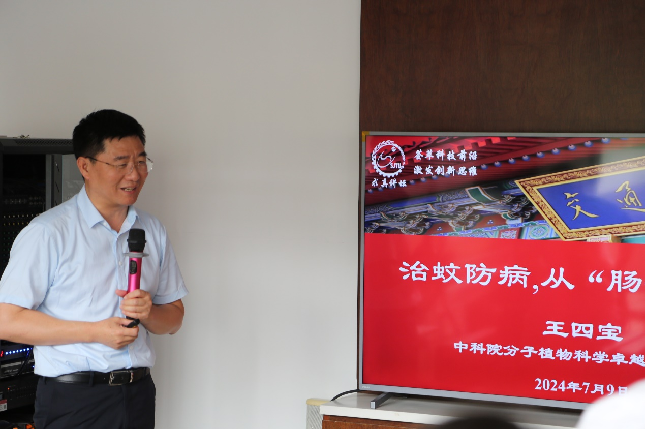 7月9日上午,中国科学院分子植物科学卓越创新中心研究员王四宝教授做客第44期求真讲坛,做题为《治蚊防病,从“肠”计“益”》的主题报告。来自det365登录网站主页生命学科相关院系的教师、博士后、研究生近40人参会。讲坛由det365登录网站主页院长张雁主持。