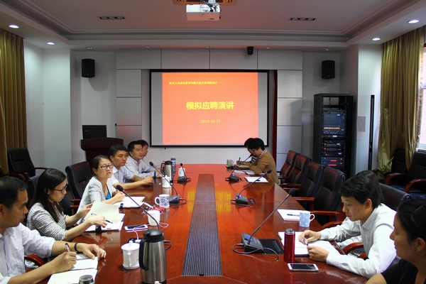 为训练机关人员的全局观念和战略思维,对工作的思考往前走半步,10月15日下午,det365登录网站主页机关在生物药学楼2-116会议室举行了机关人员职业素养和能力提升系列主题活动之——模拟应聘。该活动邀请到了党委组织部副部长王震、校办副主任张逸阳、党办统战部联合党支部委员刘子勋作为评审嘉宾,与院党委书记仰颐、副书记郑敏、李文纯,副院长陈峰共同组成评审小组。