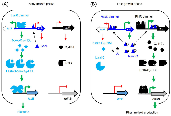 2.铜绿假单胞菌协调不同群体感应信号分子交替合成的分子机制