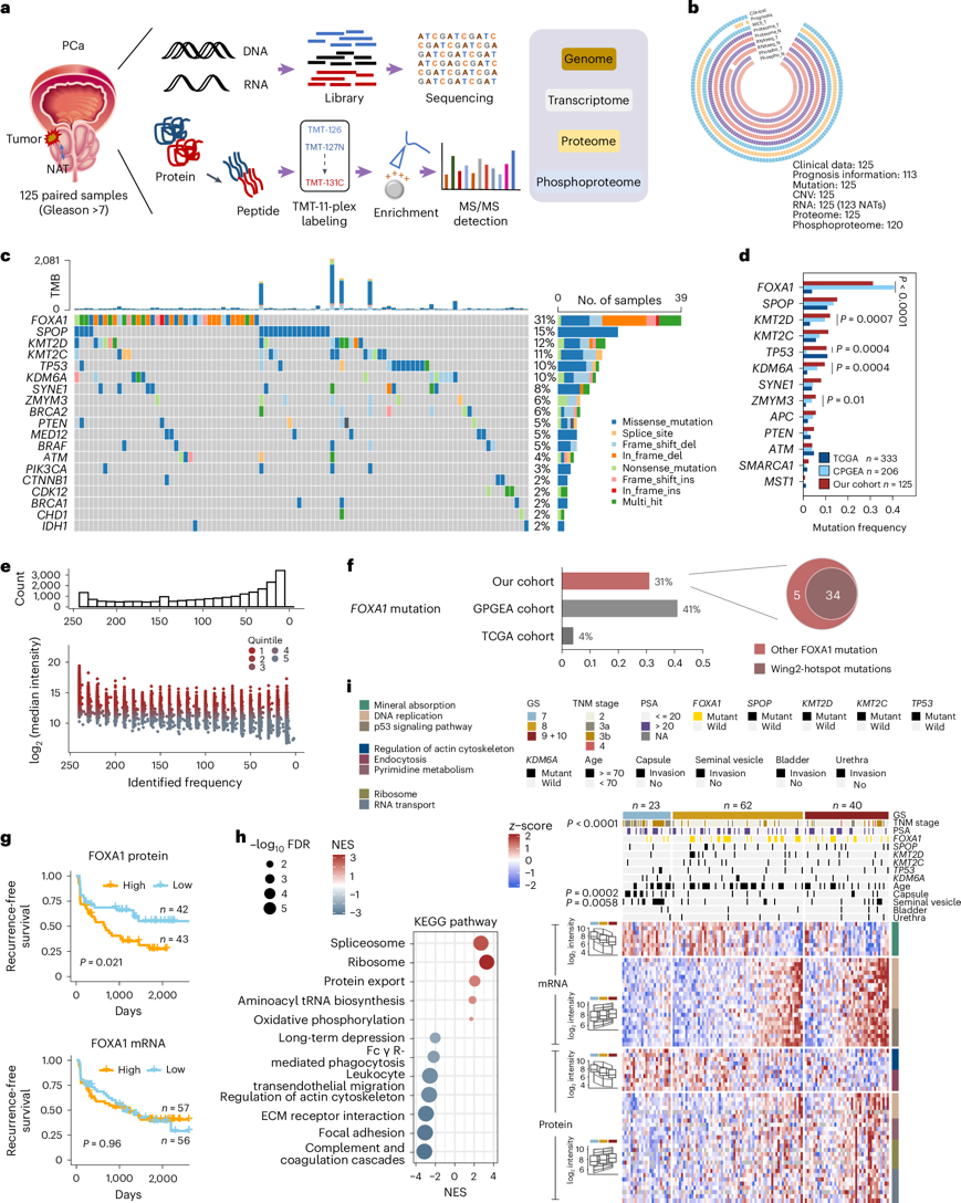 近日,det365登录网站主页李婧课课题组联合det365登录网站主页附属仁济医院薛蔚/董柏君团队、中国科学院上海药物研究所/中科中山药物创新研究院谭敏佳/徐骏宇研究团队、中国科学院营养与健康研究所秦骏课题组于Nature子刊Nature Cancer发表题为 “Integrative proteogenomic profiling of high-risk prostate cancer samples from Chinese patients indicates metabolic vulnerabilities and diagnostic biomarkers” 的研究论文,综合基因组、转录组、蛋白质组和磷酸化蛋白质组数据,揭示了基因组和转录组分析未完全阐明的前列腺癌分子机制和疾病亚型,加深了人们对前列腺癌临床特征的生物学理解。det365登录网站主页博士研究生董群为共同第一作者,det365登录网站主页李婧教授为共同通讯作者。